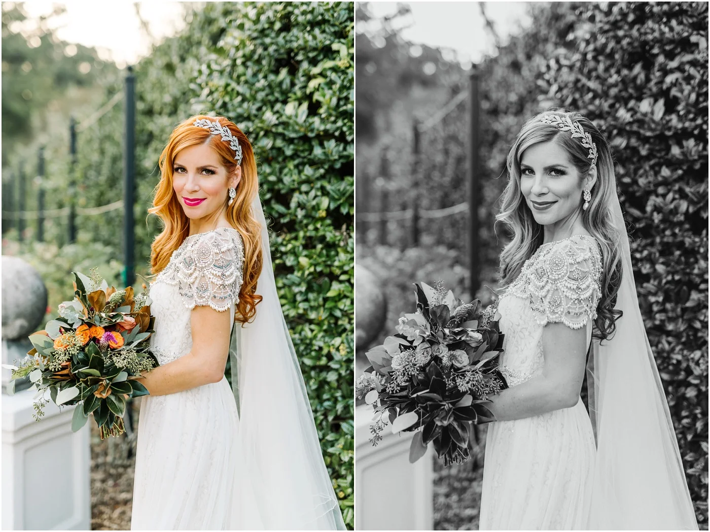"I have prayed and prayed for this beautiful bride for the longest time now. My sister, Laurel-Dawn is one of the most special people in my life. Having the honor to photograph these precious bridal portraits has been something I have been dreaming about. And now that the time is here to FINALLY share them - I couldn't be happier! Laurel-Dawn is the most unique person you might ever meet. Her gorgeous red hair makes everyone's head turn and her kind personality makes everyone fall in love with her. Laurel-Dawn is a professional artist and designer. She has impeccable taste - and she always dares to be different. Her dress is completely one-of-a-kind. She bought this dress about a year ago - and has completely transformed it. My mom is an incredible artist and seamstress and was able to transform this gorgeous Marchesa gown into Laurel-Dawn's exact bridal vision. Her veil and her bridal bouquet were also hand made by our mom - yes, this talented woman can do it all! These portraits will forever be cherished by me and my family. I will never forget this magical day!" - Hannah