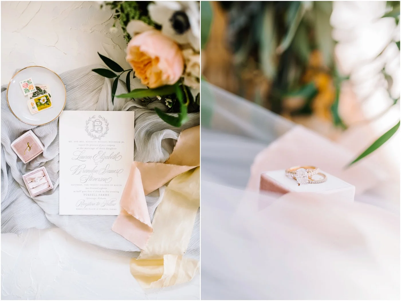 "I kicked off a busy wedding season this Spring with an absolute dream day with Lauren and Brandon in March.Lauren, her mom, and our friends at BK Wed did such an amazing job designing this wedding. The venue, florals, and every little detail tied together so beautifully.It was a super windy day at Pursell Farms - but it made for the most romantic photos. Lauren and Brandon stood back to back, reading their vows to each other on top of Pursell’s look out mountain. It was the most perfect moment.We feel so blessed to have been able to be a part of this day! Congrats to the newlyweds!" - Hannah